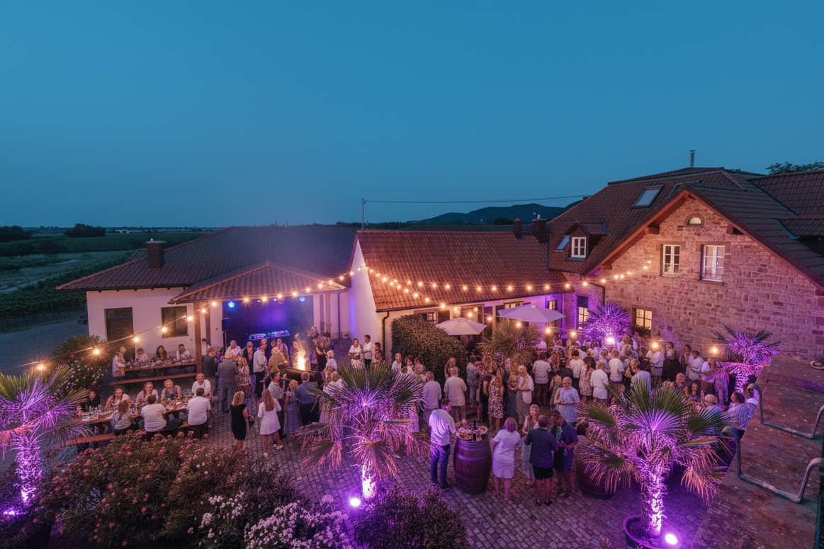 Am Samstag, den 20. Juni, verwandeln wir unser Weingut in eine pulsierende Genuss-Oase unter freiem Himmel. Wo sonst die Ruhe unserer Reifenlager herrscht, zieht an diesem Tag das Leben ein: Wir feiern die Symbiose aus ehrlichem Handwerk vom Grill, unseren präzisen Lagenweinen und treibenden elektronischen Sounds.